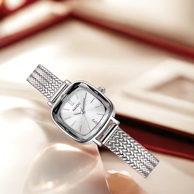 Vintage Silver Caged Pearl Womens Watch - Oval Dial