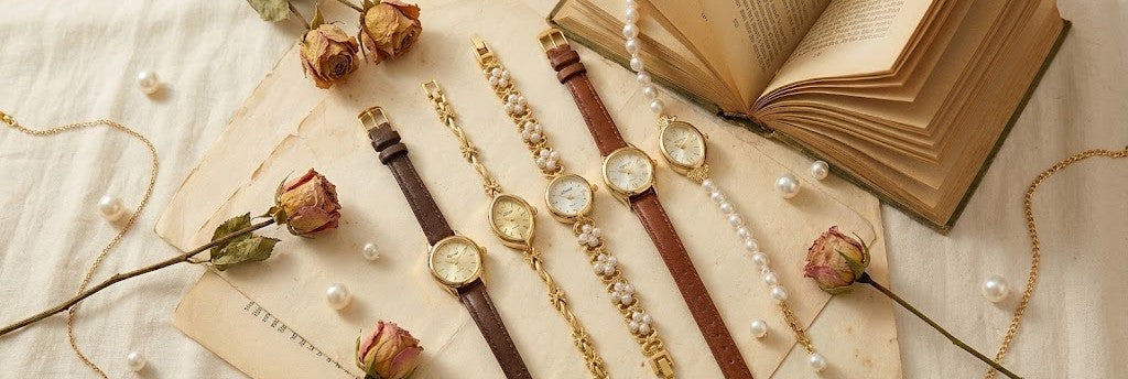Vintage Gold Pearl Cluster Womens Watch - Round Face